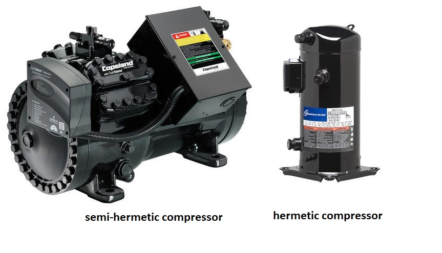 کمپرسور های تهویه وتبرید به دو دسته کلی تقسیم میشوند . کمپرسور های بسته hermetic و کمپرسور های نیمه بسته (semi hermetic) کمپرسور های نیمه بسته قابل تعمیر می باشند و قطعات یدکی انها توسط شرکت های تولید کننده در دسترس تعمیرگاه ها گذاشته شده ولی کمپرسور های بسته بصورت سنتی توسط برخی تعمیرکاران تعمیرات شده که موفقیت امیز نبوده و مدت زمان کوتاهی قابل استفاده می باشند.